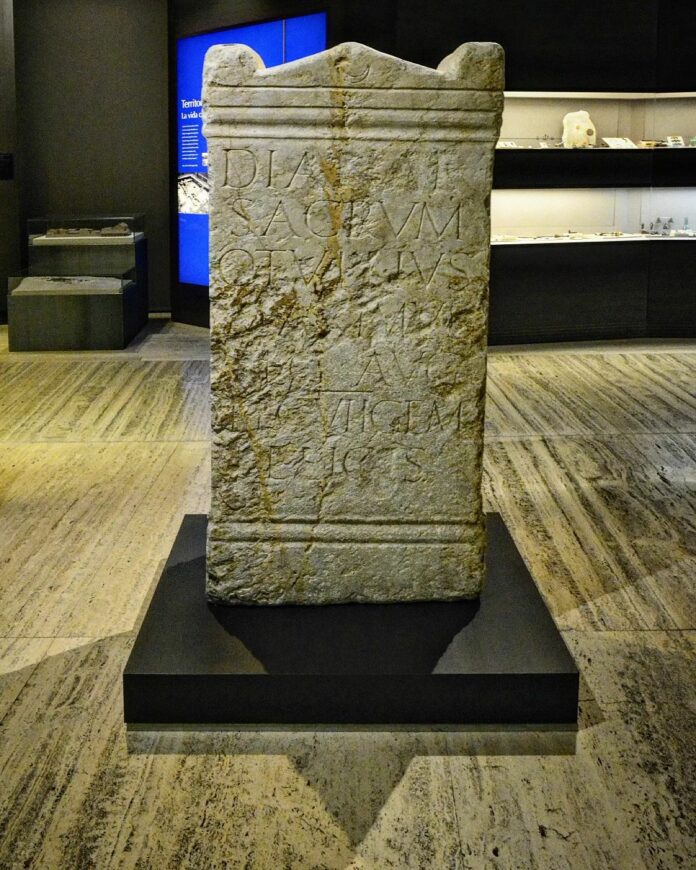 En la estela aparece la referencia a la consagración de un espacio donde se construyó un templo a Diana. Lo hace con estas palabras: