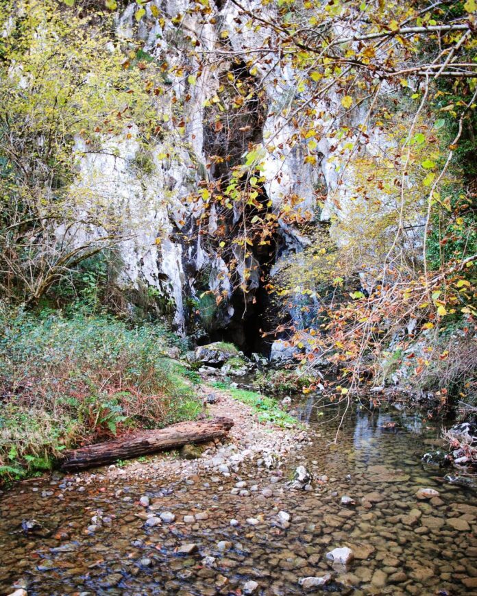 Este arroyo se encauza bajo tierra a través de este punto, el sumidero kárstico de Orandi, y vuelve a aparecer en el santuario de Covandonga en el chorro que cae en la cueva.