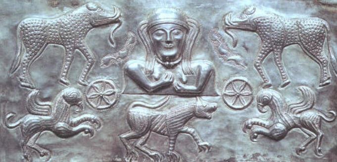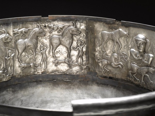 Es un tema discutido en el mundo arqueológico. A lo largo de los años se han dado diversas respuestas al significado de las distintas representaciones. Por poneros un ejemplo os diré que la figura con astas de ciervo que aparece sentada con las piernas cruzadas, ha sido identificada con Cernunnos, pero también con figuras budistas. Además, la representación de elefantes en el caldero, completamente ajena al mundo celta, ha sido para unos indicador de que había sido forjado en Asia, y para otros que se refiere a los elefantes de Aníbal camino de Roma.