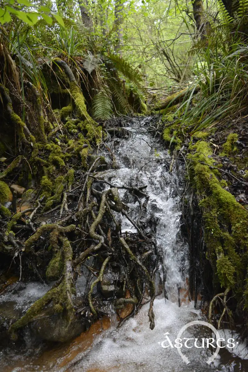 Nos salimos del camino para subir de nuevo al castro (parque) por un lugar de pendiente que nos conecta en menos de 5 minutos con la senda principal. ¿Por qué no se pone un panel en el lugar donde estaba el castro? Seguimos una vaguada que parte de la propia colina donde se asentaba el castro desde el que partimos. Esa vaguada corresponde a un manantial que nace en el propio perímetro del asentamiento y que bajaba hacia el Claudio. Como veis, agua no falta.