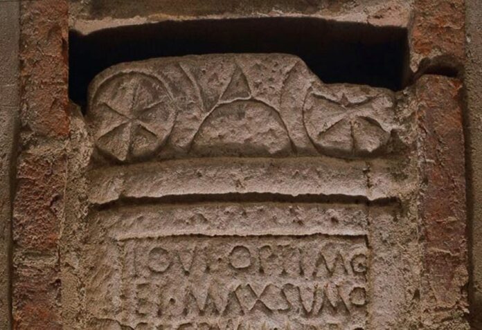Hoy os hablo de un monumento epigráfico muy especial por varios motivos. Se trata de una estela dedicada a la divinidad principal romana que se encontró formando parte del altar de la iglesia románica dedicada a San Vicente. Todo en esta estela tiene un sentido que trasciende el hecho de que sea una simple piedra reaprovechada, como tantas otras, en un templo cristiano altomedieval.
