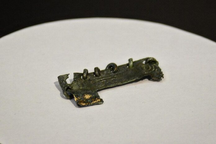 El otro día en la exposición Bronces pude ver de cerca esta fantástica pieza del yacimiento gijonés. Se trata de una fíbula de características muy parecidas a aquella otra que ya os había comentado perteneciente al castro de Llagú. Su origen lo debemos buscar en la meseta nororiental, en territorio cántabro y celtíbero y es un buen ejemplo de la difusión de este tipo de metalurgia hacia el occidente peninsular.