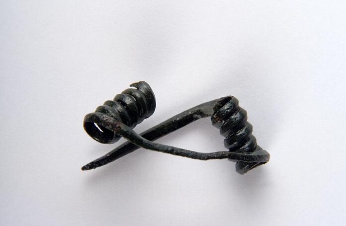 Javier, de Cpleathergoods, fue el primero que me lo había comentado nada más verla. Estaba seguro de que era un mecanismo de una fíbula sin más, probablemente el resto de la pieza, que podría ser de hierro, se había desintegrado mientras que el resorte de bronce habría resistido mejor el paso del tiempo.