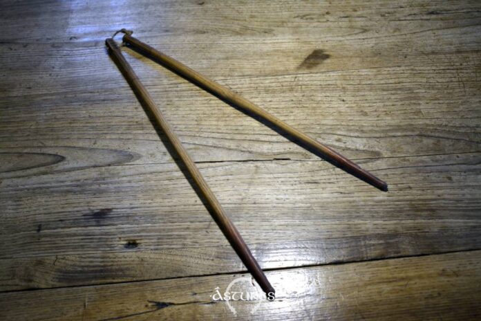 Son dos varas de entre medio metro y 80 cm que están unidas por una cuerda o una tira de cuero en su parte superior. Es una herramienta especializada que permite arrancar las espigas y no cortar el tallo1 que se utilizaría para otras funciones. Lo bueno es que fueron comunes en el siglo XX y aún se siguen usando en puntos concretos de Asturias.