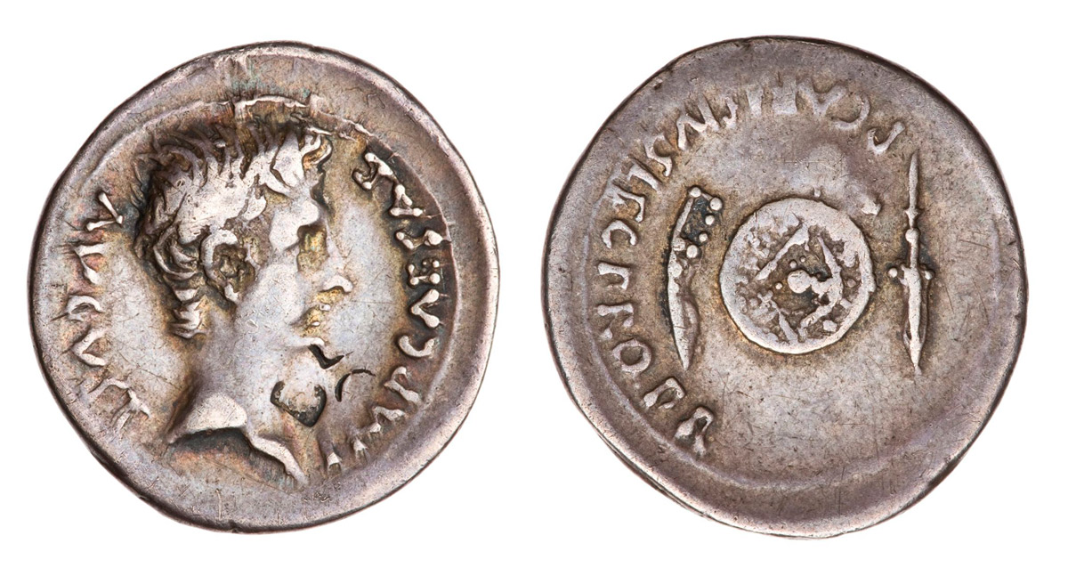 Denario de Augusto. Emerita / Mérida. Publio Carisio.